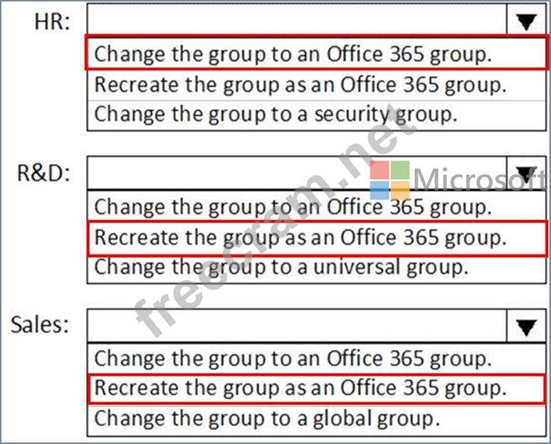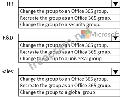 What should you do to each group? To answer, select the appropriate options in the answer area.