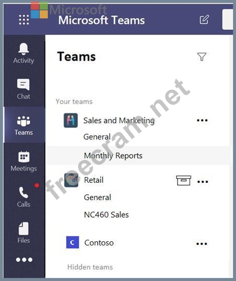 You company has a Microsoft 365 subscription that contains the teams shown in the following exhibit.