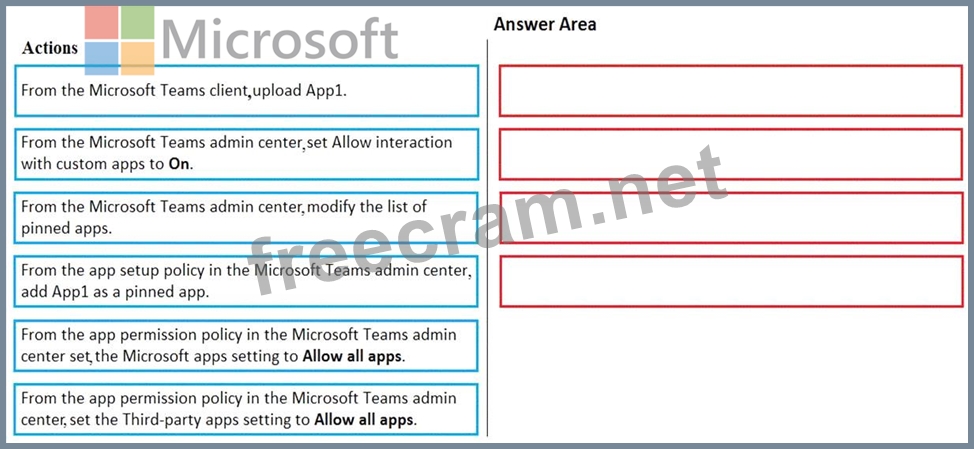 Your company has a custom Microsoft Teams app named App1.