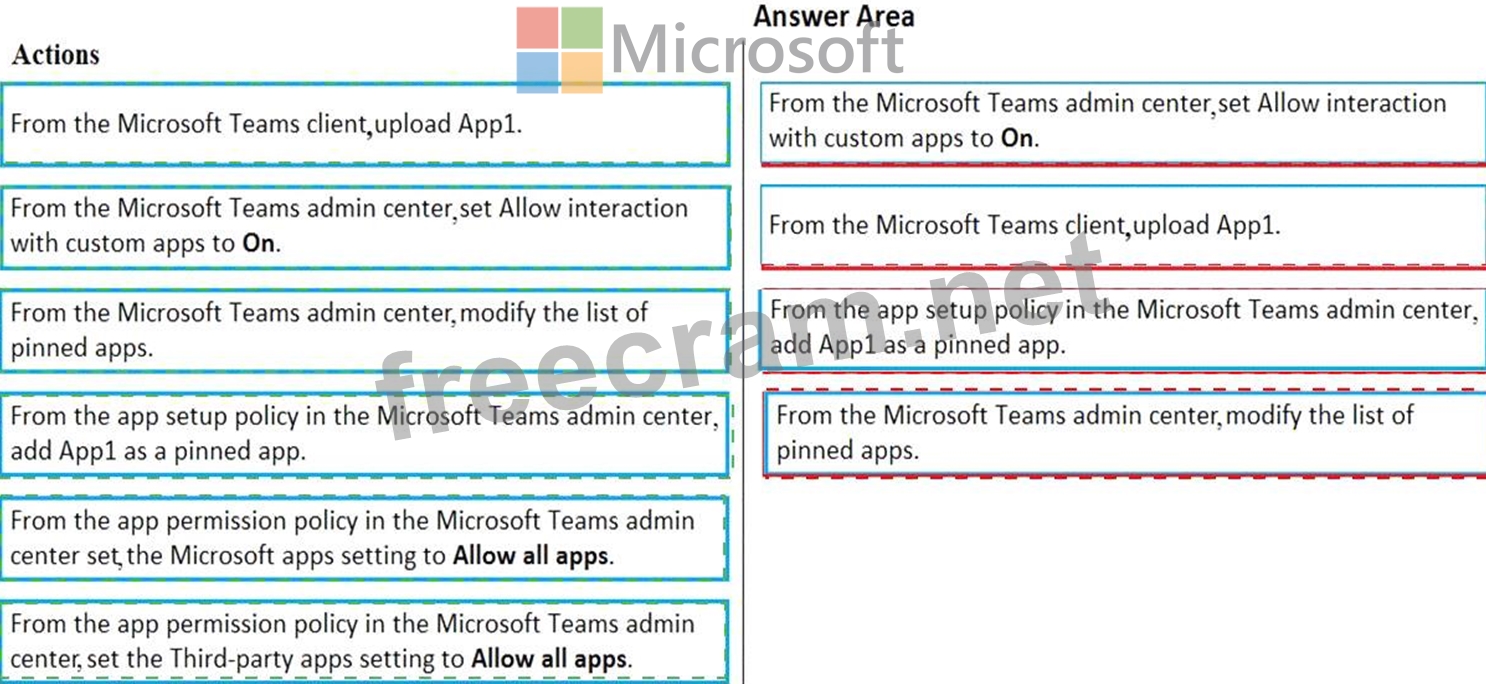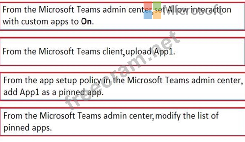 You need to deploy App1. The solution must ensure that App1 appears as the first item on the app bar of the Microsoft Teams client.