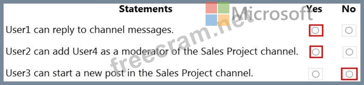 You create a channel named Sales Project and configure the Channel moderation settings as shown in the following exhibit.