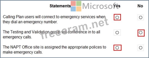 The global emergency calling policy is configured as shown in the Emergency Calling exhibit. (Click the Emergency Calling tab.)