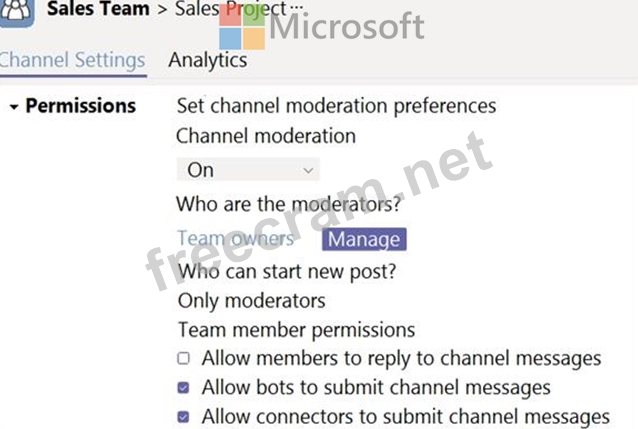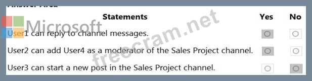 You create a channel named Sales Project and configure the Channel moderation settings as shown in the following exhibit.