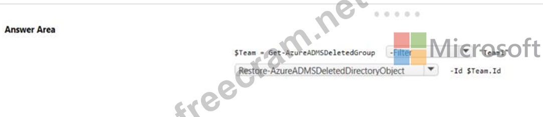 How should you complete the PowerShell script? To answer, select the appropriate options in the answer area.