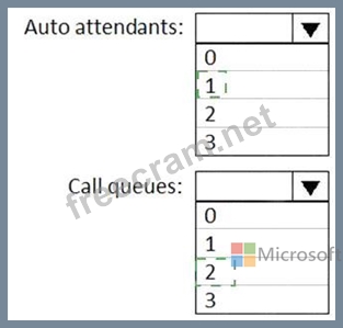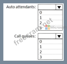 What is the minimum number of auto attendants and call queues you should configure to meet the requirements? To answer, select the appropriate options in the answer area.
