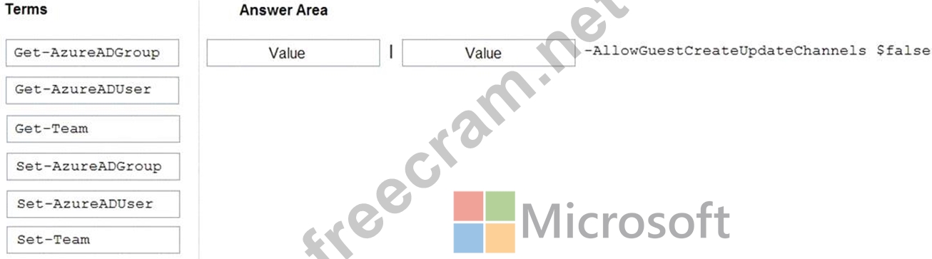 How should you complete the PowerShell script? To answer, drag the appropriate options to the correct targets. Each option may be used once, more than once, or not at all. You may need to drag the split bar between panes or scroll to view content.