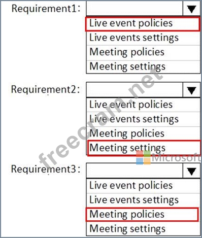 You need to configure Microsoft Teams to meet the requirements shown in the following table.