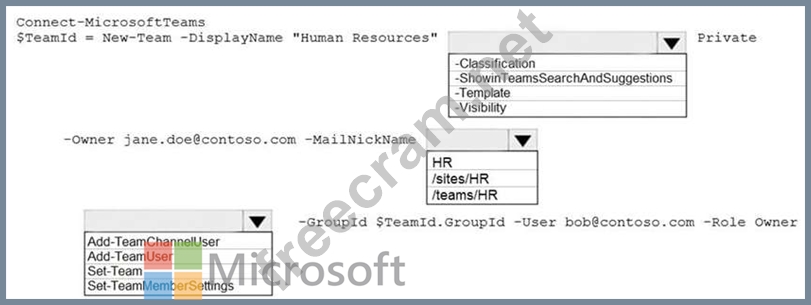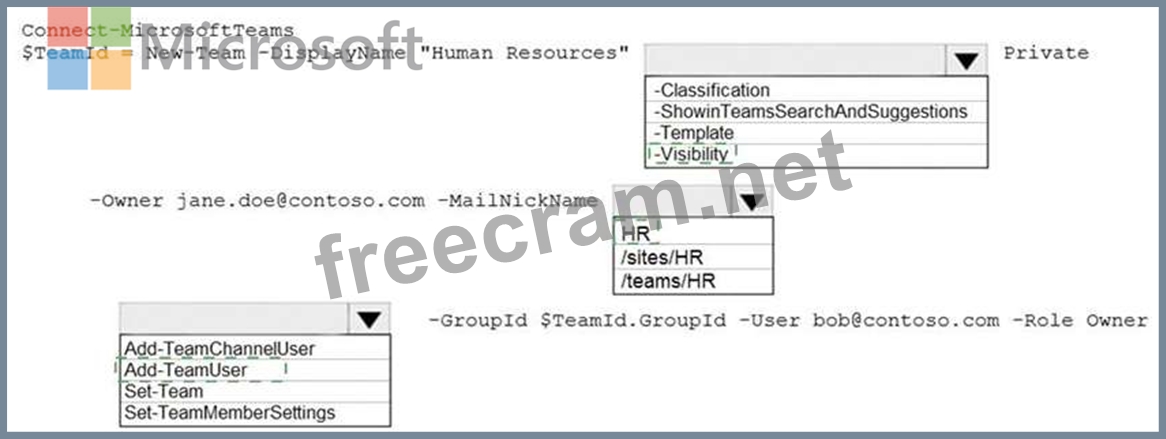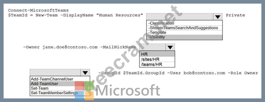 You need to create a new Microsoft Teams team named Human Resources that meets the following requirements: