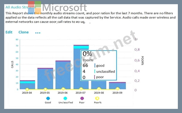 Question 19: You open the Microsoft Call Quality Dashboard as shown in th...