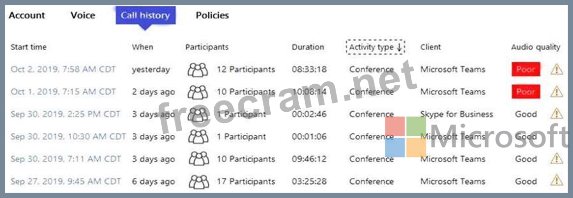 Question 19: You open the Microsoft Call Quality Dashboard as shown in th...