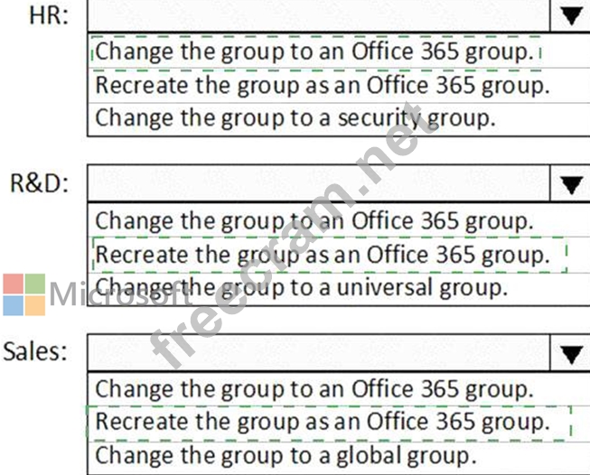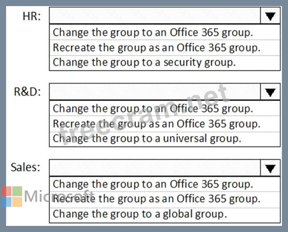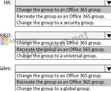 What should you do to each group? To answer, select the appropriate options in the answer area.