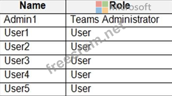 You have a Microsoft 365 subscription that uses Microsoft Teams and contains the users shown in the