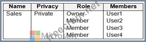 You have a team named Sales that is configured as shown in the following table.