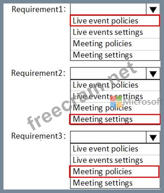 You need to configure Microsoft Teams to meet the requirements shown in the following table.