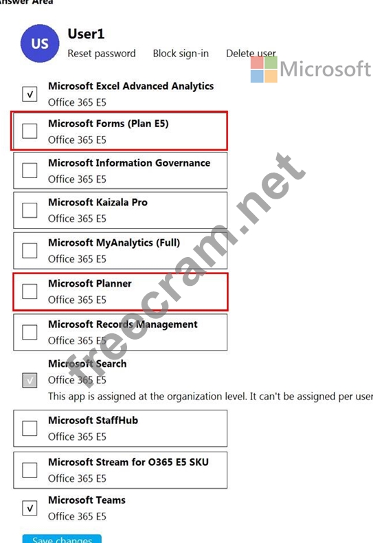 Which two additional licenses should you assign to User1? To answer, select the appropriate settings in the answer area.