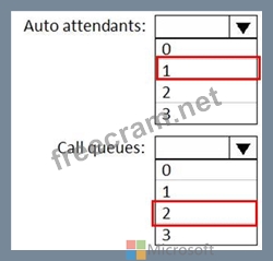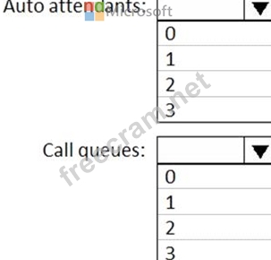 What is the minimum number of auto attendants and call queues you should configure to meet the requirements? To answer, select the appropriate options in the answer area.