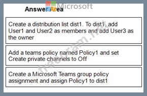 1 - Create a distribution list dist1. To dist1, add User1 and User2 as members and add User3 as the owner