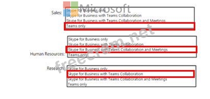 Question 41: You need to configure Microsoft Teams to meet the department...