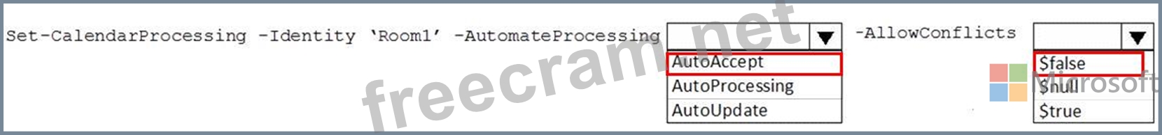 You need to ensure that Room1 automatically accepts meeting invitations. The solution must prevent meeting invitations from being accepted if the room is unavailable.