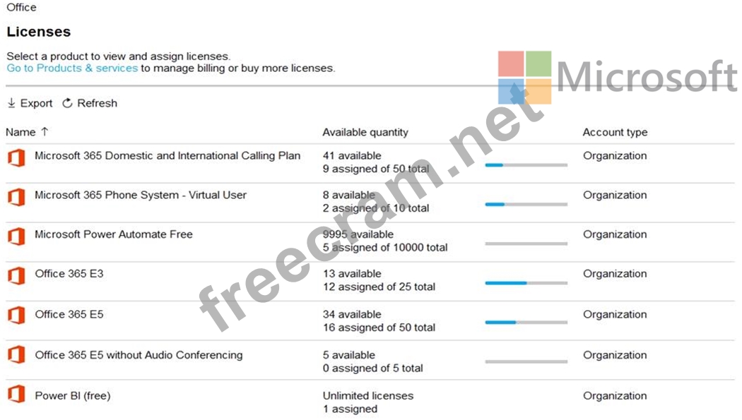 Question 42: You have a Microsoft 365 subscription that has the licenses ...