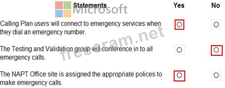 The global emergency calling policy is configured as shown in the Emergency Calling exhibit. (Click the Emergency Calling tab.)