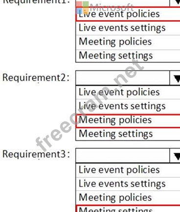 You need to configure Microsoft Teams to meet the requirements shown in the following table.