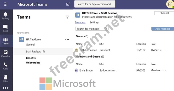 Your company has a Microsoft Teams deployment that contains a team named HR Taskforce. The members of HR Taskforce are shown in the HR Taskforce exhibit.