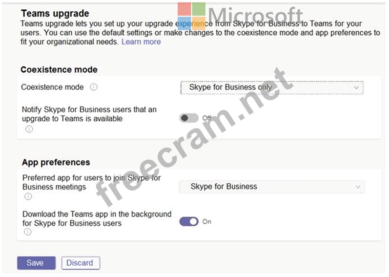 You plan to upgrade the Skype for Business Online users to Microsoft Teams.
