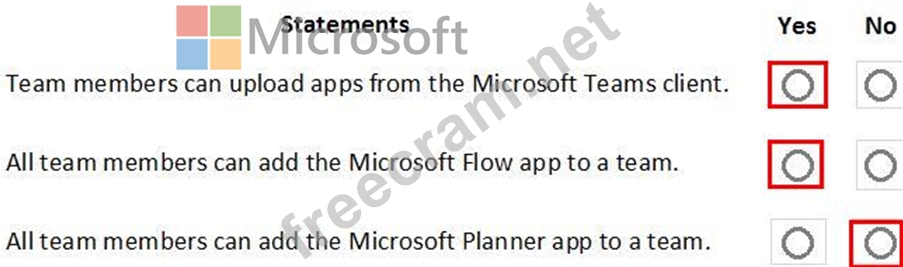 For each of the following statements, select Yes if the statement is true. Otherwise, select No.