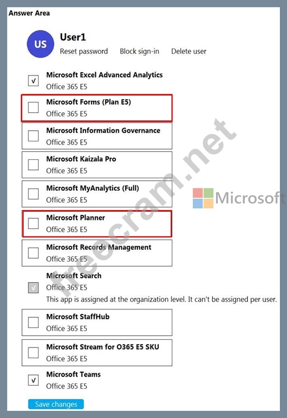 Which two additional licenses should you assign to User1? To answer, select the appropriate settings in the answer area.
