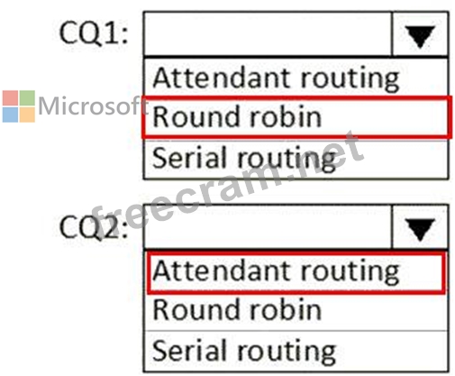 Which routing method should you configure for each call queue? To answer, select the appropriate options in the answer area.