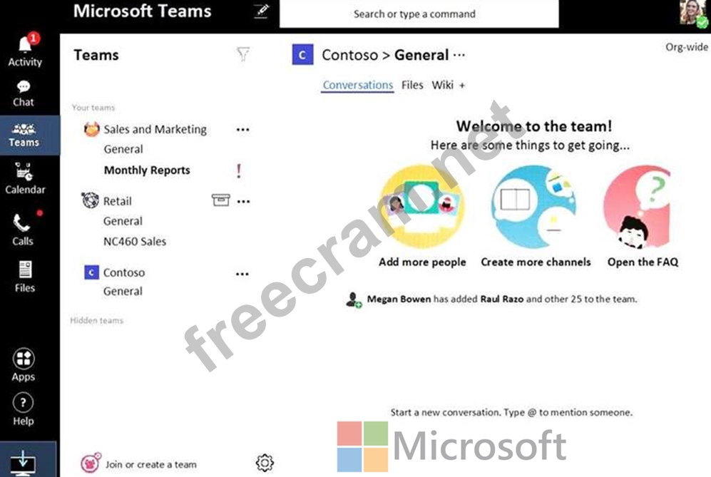 From the Microsoft Teams client, you review the teams shown in the exhibit. (Click the Exhibit tab.)
