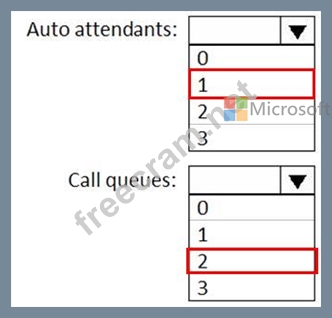 What is the minimum number of auto attendants and call queues you should configure to meet the requirements? To answer, select the appropriate options in the answer area.