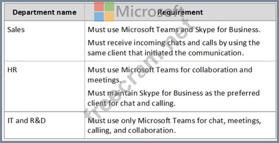 Litware identifies the following requirements for a planned upgrade from Skype for Business Online to Microsoft Teams: