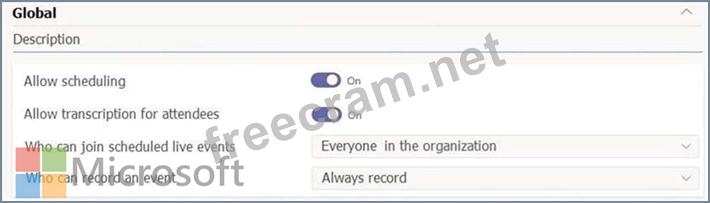 The company's global live event policy is configured as shown in the following exhibit.