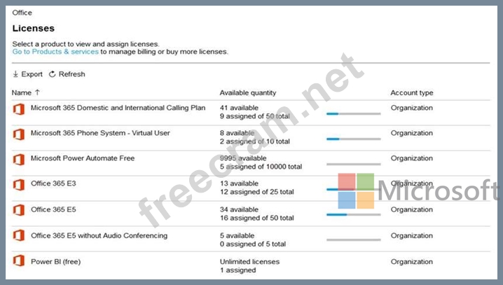 Question 6: You have a Microsoft 365 subscription that has the licenses ...