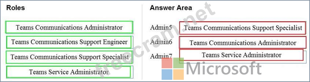 Which role should you assign to each administrator? To answer, drag the appropriate roles to the correct users. Each role may be used once, more than once, or not at all. You may need to drag the split bar between panes or scroll to view content.