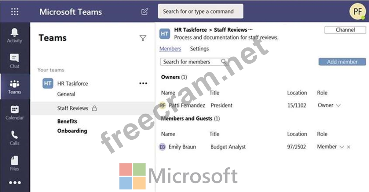 Your company has a Microsoft Teams deployment that contains a team named HR Taskforce. The members of HR Taskforce are shown in the HR Taskforce exhibit.