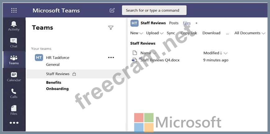 The files in the Staff Reviews channel are shown in the Files exhibit.