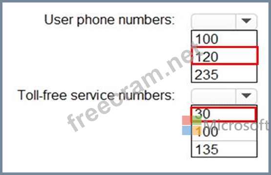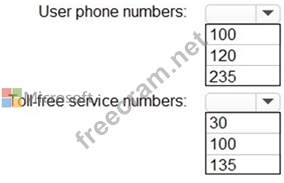 What is the maximum number of user phone numbers and toll-free service numbers you can acquire? To answer, select the appropriate options in the answer area.