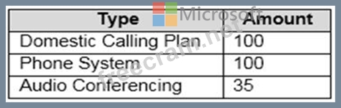 You have a Microsoft 365 subscription that has the licenses shown in the following table.