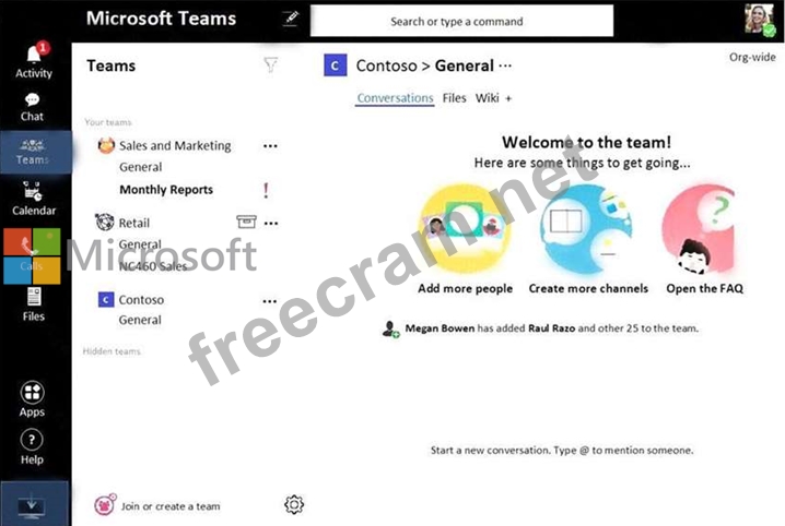 From the Microsoft Teams client, you review the teams shown in the exhibit. (Click the Exhibit tab.)