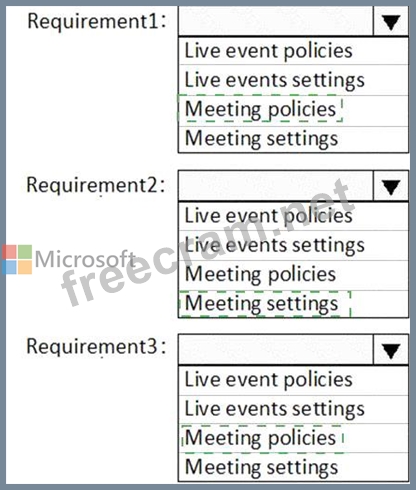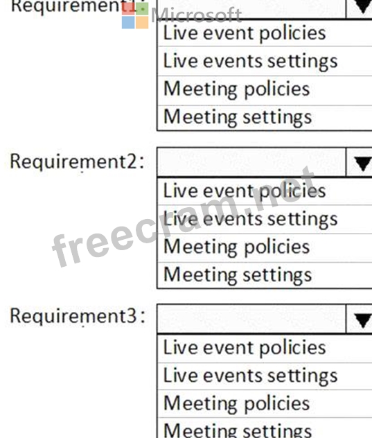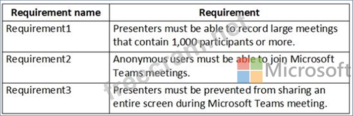 You need to configure Microsoft Teams to meet the requirements shown in the following table.