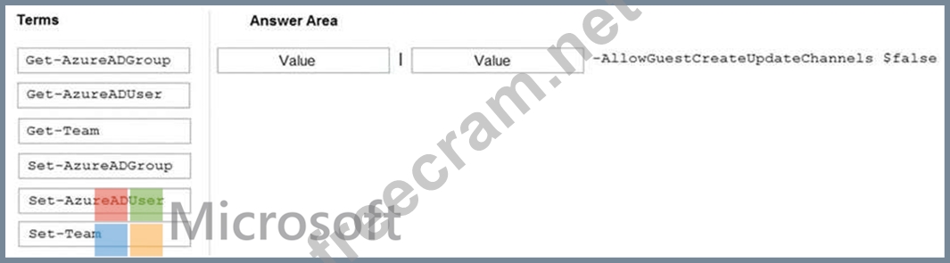 How should you complete the PowerShell script? To answer, drag the appropriate options to the correct targets. Each option may be used once, more than once, or not at all. You may need to drag the split bar between panes or scroll to view content.