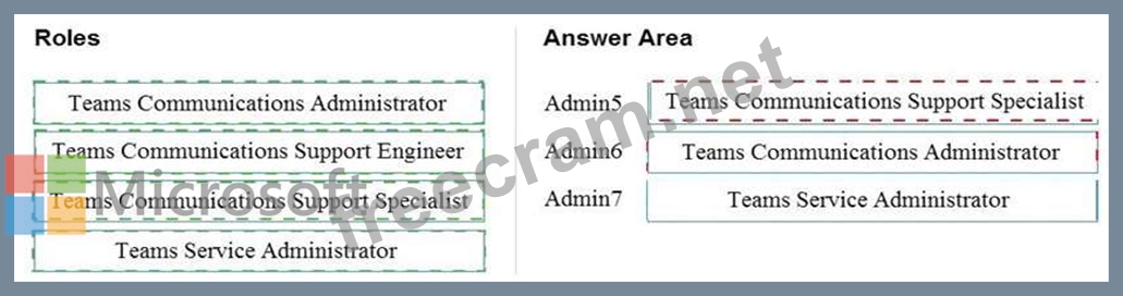 Which role should you assign to each administrator? To answer, drag the appropriate roles to the correct users.