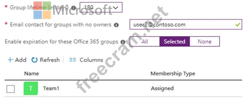 User1 configures the Groups Expiration settings as shown in the following exhibit.