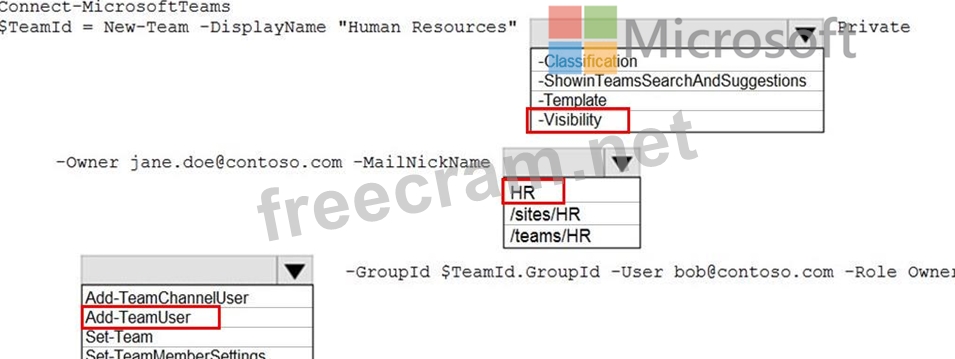 You need to create a new Microsoft Teams team named Human Resources that meets the following requirements: