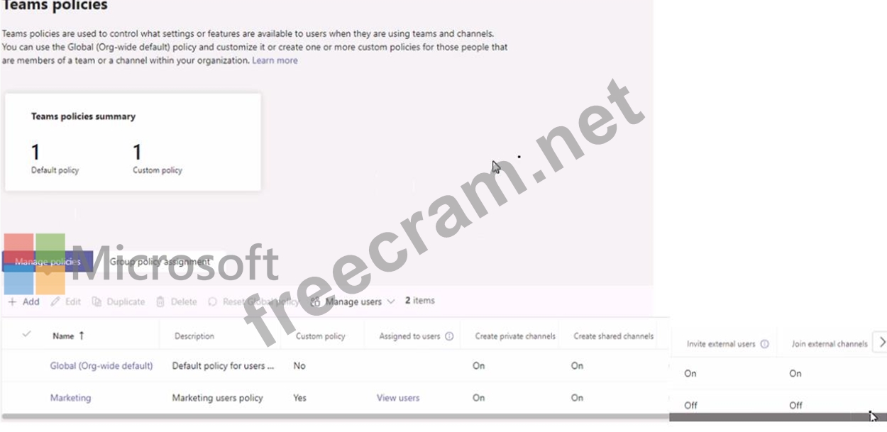 * The marketing department must be able to apply a watermark to content and video shared dunng Teams meetings.