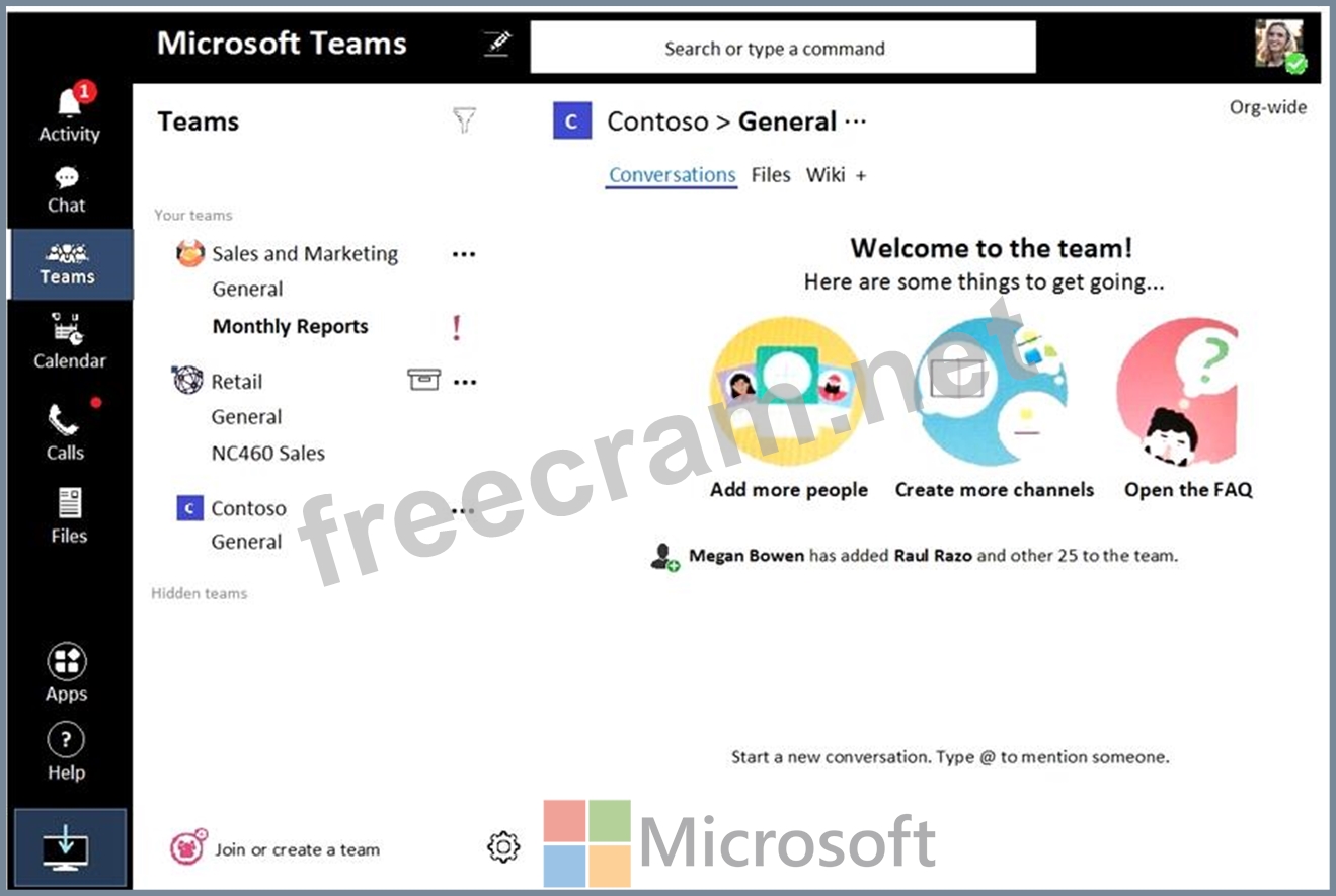 From the Microsoft Teams client, you review the teams shown in the exhibit. (Click the Exhibit tab.)