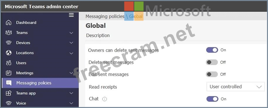 The company's only messaging policy is a global messaging policy configured as shown in the following exhibit.